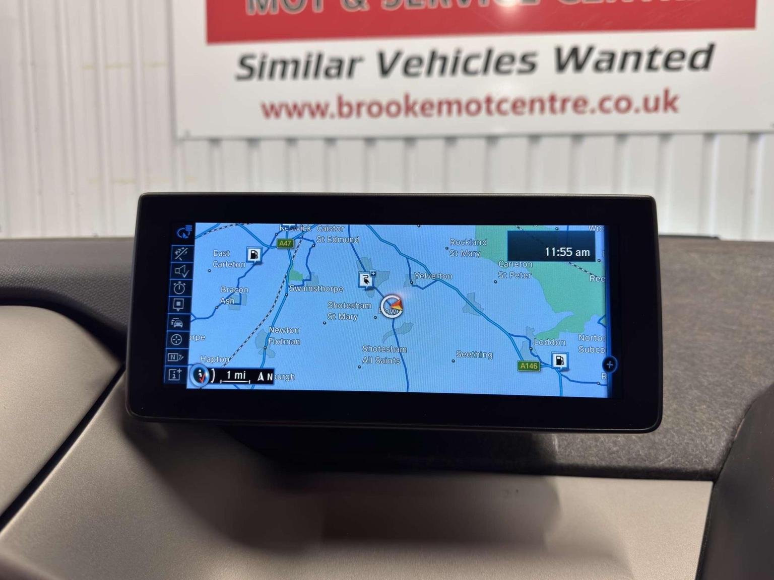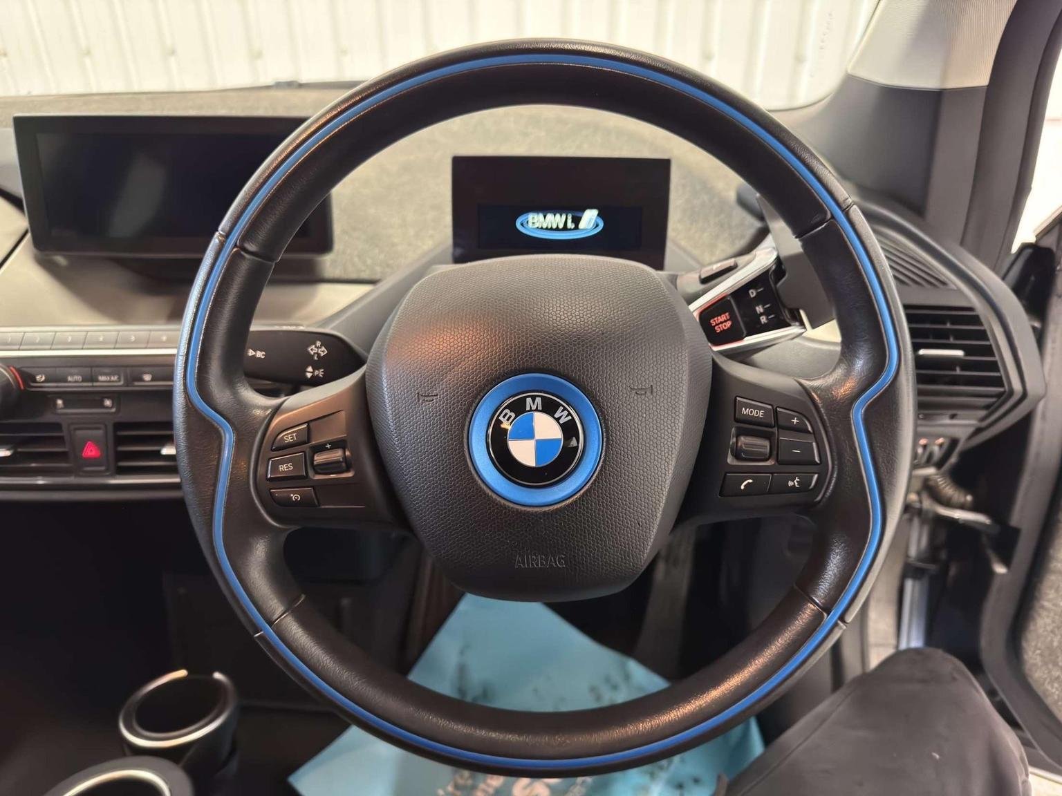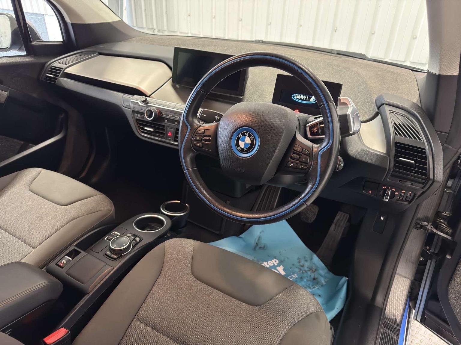 Cup Holders - Detachable x2 - Rear, DAB Digital Radio, DBC - Dynamic Brake Control, DSC - Dynamic Stability Control Plus, DTC - Dynamic Traction Control, Daytime Running Lights - LED with BMW i Design, Door Handles - Body Colour, Door Mirrors - Automatic Parking Function, Door Mirrors - Body Coloured Housing, Door Mirrors - Folding - Automatically Dimming, Door Mirrors - Integrated Indicators - LED, Door Mirrors - Memory via Personal Profile, Door Sill Finishers - BMW Designation - Black, Drive Performance Control with ECO PRO Plus - ECO PRO and Comfort Modes, Dynamic Brake Lights, Electric Windows - Front Open and Close Fingertip Control, Electronic Differential Lock, Engine Immobiliser, Exhaust Tailpipe - Hidden, Extended Storage, First Aid Kit, Floor Mats - Velour - Anthracite, Follow Me Home Headlight Function, Gear Selector Switch Located on Steering Column - Chrome Pearl Grey with Leather Inserts, Glove Box with Dividing Level, Grab Handles - Integrated in Roof Lining - Front, Halogen Headlights, Head Restraints - Rear Seat Folding x2, Headlights - Beam Throw Control, Heat Protection Glazing with Green Tint, Heated Windscreen Washer Jets, Hill Start Assist, Illuminated Charging Socket with Visual Display of Charge Status, Indicator Lenses - Clear, Indicators - Integrated into Rear Light Cluster Behind Tailgate Mirror Caps - LED, Interior Lighting, Interior Trim - Andesit Silver - Metallic Effect, Kidney Grille - Contrast Surround in BMW i Blue with High-Gloss Black Centre, LED Light Elements, Lights-On Warning, Locking Wheel Bolts, Luggage Compartment - Lashing Eyes x2, Luggage Compartment - Lashing Eyes x4, Luggage Compartment - Light, Luggage Compartment - Strap and Storage Net, Media Package - BMW Business, Multifunction Controls for Steering Wheel, Navigation System - BMW Business Advanced, Navigation System - BMW Professional Multimedia, OBC - On-Board Computer, Oil Sensor For Level and Grade - Warning by Check Control System, PDC - Park Distance Control - Rear, Park Assist, Parking Lights - LED, Personal Profile, Power Steering - Electric with Servotronic, Rain Sensor with Automatic Headlight Activation, Rear Lights - LED Integrated into Tailgate, Rear Spoiler - Black with Integrated LED Brake Light, Remote Control Including Integrated Key - 2, Remote Services, Roof Mouldings - Body Colour, Seat Belt Security Check for Driver and Front Passenger, Seats - 50-50 Split Folding Rear, Shark Fin Aerial, Side Impact Protection, Sliding Through Light Weight Front Seats, Speaker System with 4x25 Watt, Speakers x2 - Midrange in Front Door Panels, Speakers x2 - in A-Pillar, Standard Charge Cable - 5 Metres with Storage Under Bonnet, Start-Stop Button with Keyless Operation, Steering Column with Manual Reach and Rake Adjustment, Steering Wheel - Leather Multifunction Two Spoke - Black with Unique BMW i Blue Accent, Storage Compartment - Front Doors, Sun Visors with Vanity Mirrors and Ticket Holder, TPWS - Tyre Pressure Warning System, Tyres - Reduced Rolling Resistance, USB Audio Interface, Window Surrounds - Black, eDrive Designation - Rear, iDrive Controller with Shortcut Buttons, 12V Power Socket - Centre Console, 12V Power Socket - Luggage Compartment, 19in Alloy Wheels - i Light Streamline Star-Spoke Style - 427, 5.7in Colour TFT Display - Instrument Cluster, 6.5in Colour Display Screen, ABS - Anti Lock Braking System, AC Fast Charge Preparation, ADB - Automatic Differential Brake, ASC - Automatic Stability Control, Air Conditioning - Automatic - Single Zone, Airbags - Curtain, Airbags - Driver, Airbags - Front Side, Airbags - Passenger, Airbags - Passenger Deactivation, Alarm System Thatcham 1 with Remote Control, Armrest - Front Centre, Armrest - Front and Rear Integrated into Door Trim, Armrest - Front with Storage Compartment, Automatically Dimming Rear View Mirror, Auxiliary Input, BMW Apps Interface, BMW ConnectedDrive - Online, BMW ConnectedDrive Online Services, BMW Emergency Call, BMW Mobility System, BMW Professional Radio, BMW TeleServices, Battery Safety Cut Off, Bluetooth Hands Free with USB Audio Interface, Brake Assist, Brake Drying, Brake Pad Wear Indicator - Front and Rear, Brake Readiness, Bumpers - Body Colour, CBC - Cornering Brake Control, Central Locking - Remote, Check Control Warning System, Child Seat ISOFIX Attachment - Rear x2, Comfort Go Keyless Engine Start, Comfort Package, Contrast High-Gloss Black - Bonnet, Contrast High-Gloss Black - Roof, Contrast High-Gloss Black - Tailgate, Crash Sensor - Activating Central Locking-Hazard Warning Lights-Fuel Cut Off, Cruise Control with Brake Function, Cup Holders - Centre Console